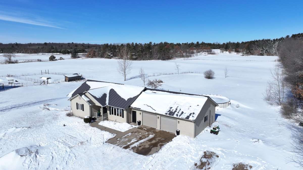 I am excited to share details regarding this beautiful 4-bedroom, 2-bathroom home located on 12.57 acres just off Highway 66, a short distance from Stevens Point. The home features stunning hickory floors throughout the kitchen, dining, and living areas. The main level includes a bathroom with plank vinyl flooring, which also extends through all the upstairs bedrooms and the master suite. The master bathroom is well-appointed with a spa tub and a walk-in shower. The lower level offers a family room, a laundry area, and a fourth bedroom with egress windows, along with ample storage space in the unfinished portion of the basement. Outside, you can enjoy country living with a 27-foot swimming pool and a firepit in the backyard. Also includes an outdoor animal shelter that was built in 2024.
